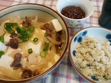 コロ父に牛丼を作り私用には一緒に豆腐を煮る。