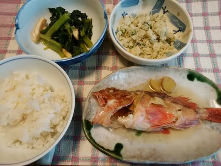昼に夕食用にちょっと小さめの鯖を買ってあったのは明日にして、メバルを煮ていただいた。