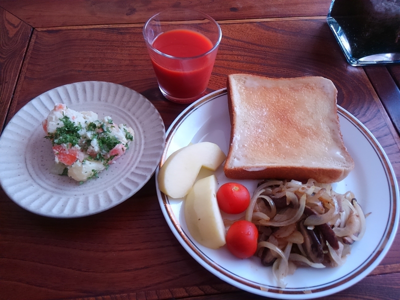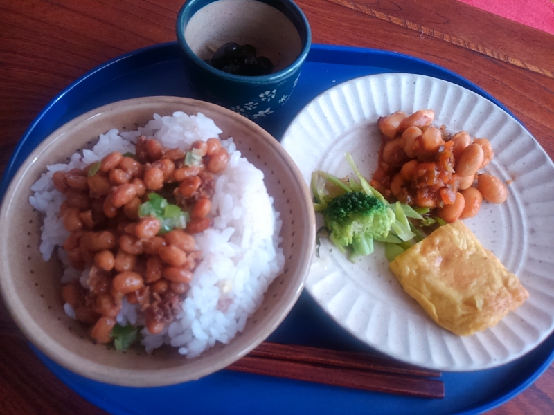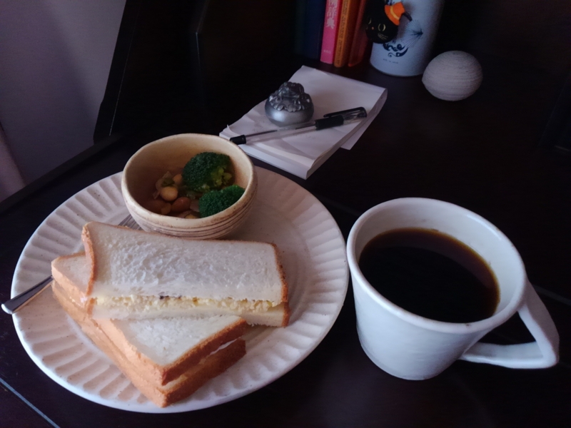 鶏ハムサンドイッチ、カレー豆、珈琲。