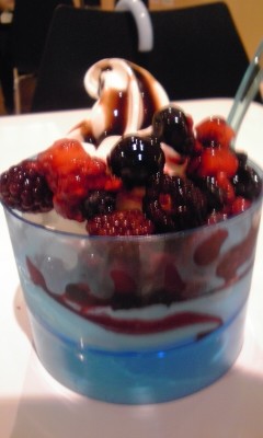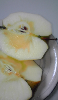 アルマジロ型ハンバーグ。手足がトマトで、目がブラックベリー。ブラックベリーはまだ硬くてすっぱかった。