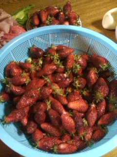 大量の苺。しかしこれはもうすでに近所や親戚に配り終わった後の残り物…。おそらく