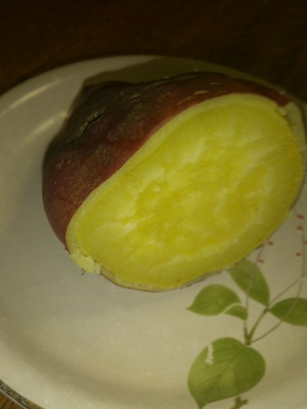お家で取れたさつまいも。とりあえず蒸かしてみた。