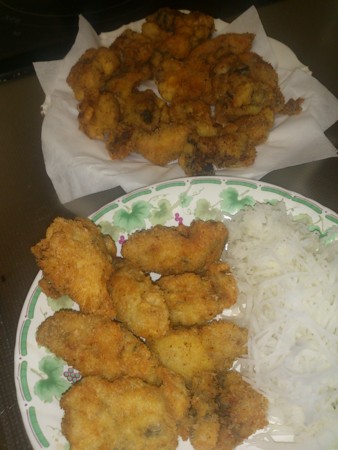 親がすでに晩ごはん食べ終わった後でこれだけあるということはやはり買いすぎたか(むき身2袋で計1キロ)去年は1つ買って少ないって言われたからさあ~。