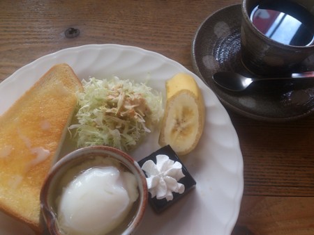 久しぶりに足湯に来ました。珈琲一杯の金額で足湯に入りながらモーニングがいただけるって幸せだなあ。