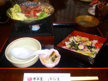 寺子屋さんという古民家を改装したお店で但馬牛のすき焼きランチいただきます。(^ω^)