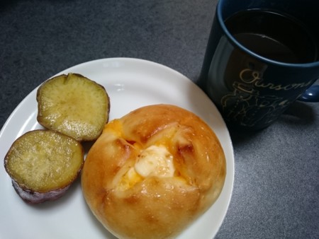 出先ではいく見たら友達が美味しそうなパン食べてた。そのままパン屋行っちゃうよね~(笑)4種類のチーズの入ったパン食べる~。