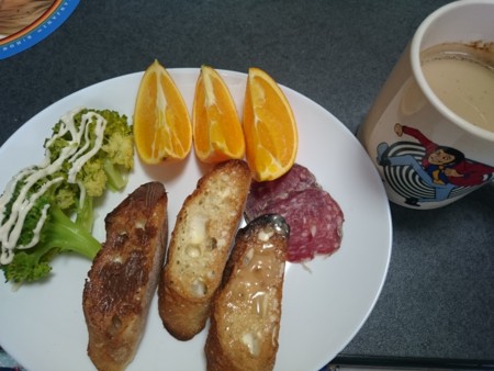 朝ご飯~。またパンいっぱい買っちゃった。そして念願のパン切り用のナイフも買った!今まで無かったから普通の包丁で切ってたんだけど、やっぱり切りにくいのよね。