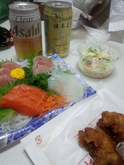 ビール部のおともに豪華お刺身〜( ´艸`)
