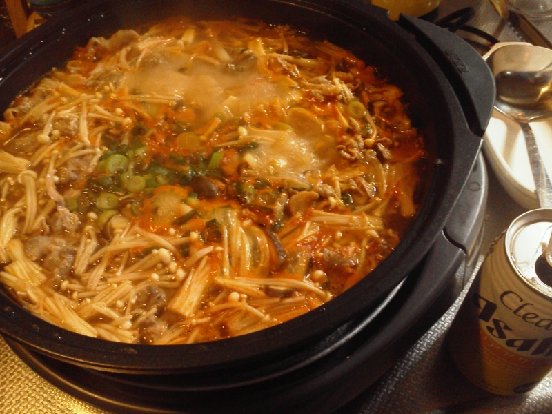 今日は我が家の拙作キムチ鍋(;´Д`)