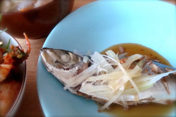 今日はお弁当がないので鯵を蒸しました。野菜はキムチでとりました。