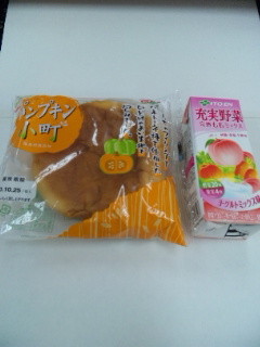 パンプキン小町373キロカロリー、充実野菜ももミックス83キロカロリー。