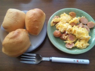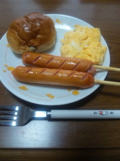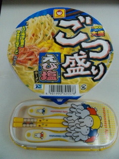 赤いきつねうどん(186キロカロリー)と、コモパンバター味(340キロカロリー)を。