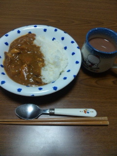 朝ごはんのドロリッチと昼ごはんのきのこスープ、バニラチョコパン。