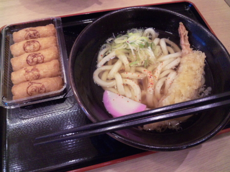 お昼ご飯は『うどんちゃんのやたい』で天ぷらうどん&いなり寿司
