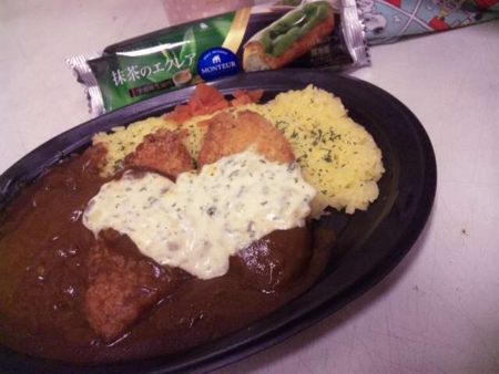 白身魚フライのせカレー&抹茶エクレア