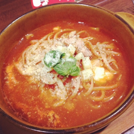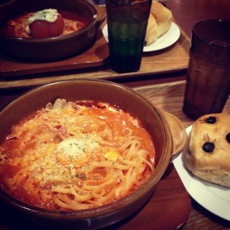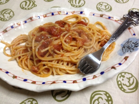 出来合いのソースだけど温める時にオイルとニンニクで風味つけるとレベルアップするよねー。