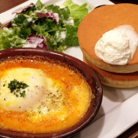 ラザニアとパンケーキのプレートだよー!