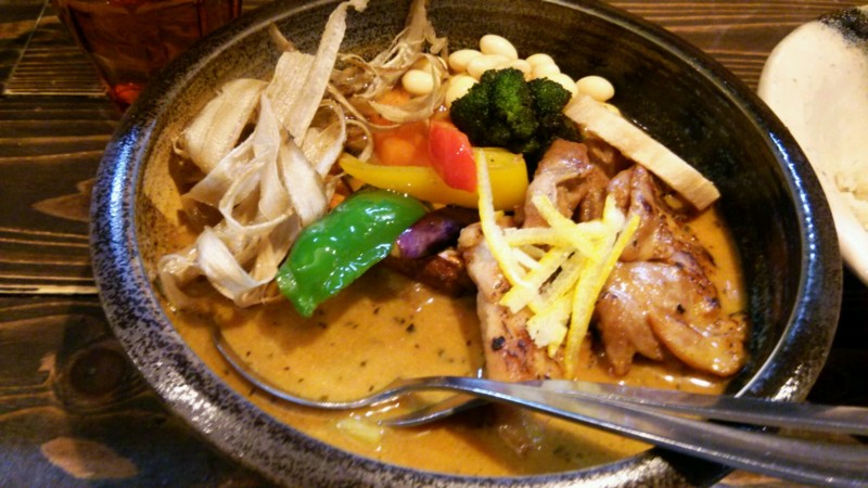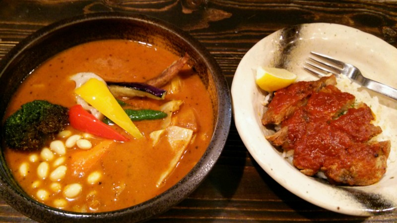 8月のカレー “洋食屋さん風ポークチャップのトマトココナッツスープのカレー” 美味しー