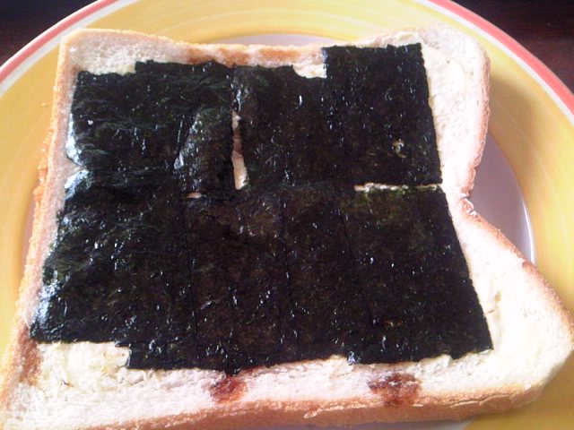 食パンに切って醤油つけた海苔をのっける。