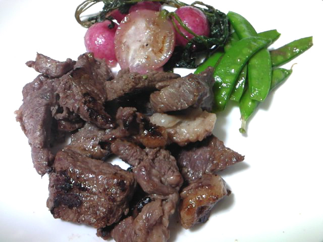 さんかく家ではステーキ肉は切っちゃってから焼きます。