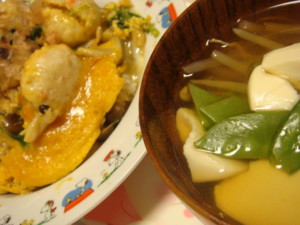 鶏だんご使用親子丼(ほうれんそうとしめじ)。