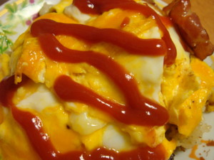 鶏肉、しめじ、ほうれん草をケチャップとパルメザンチーズで。