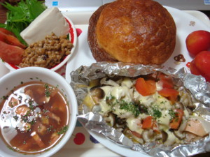 チーズのパン。しめじとチーズたっぷり鮭のホイル焼き。