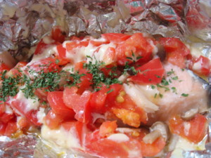 お豆腐。鮭にパルメザンチーズかけて焼き。