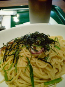PRONTOにて真いかとほうれん草の和風スパゲティ&なつオレ。
