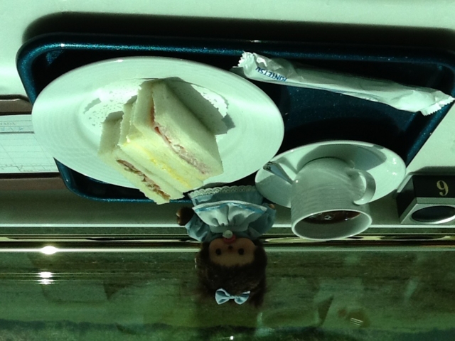 近鉄観光特急しまかぜのカフェ車両でサンドイッチセットをいただきます。