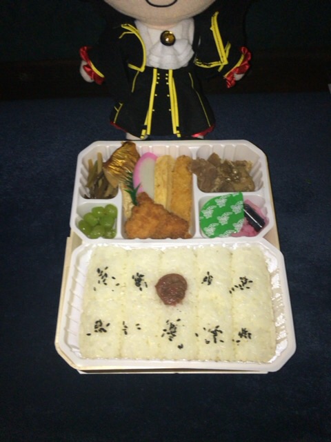 五平餅とご当地萌えキャラのロマンちゃんデザインのラムネで軽く昼食にします。