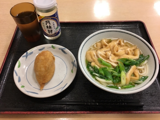 近くのうどん屋で京都らしく九条ねぎとおあげのうどん、おいなりさんをいただきます。