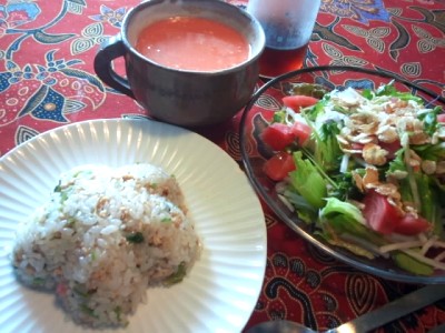 思いっきり手抜きなお昼。(スープはきのこと長ネギを足したけど)