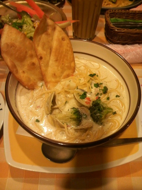 卵とチーズのソースと生クリームのソースが分かれてました(ダブルソース!)
