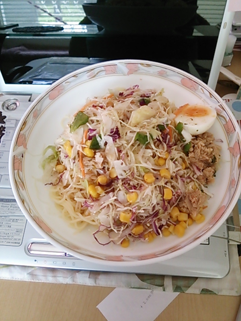 コンビニでサラダ買ってきてサラダパスタにしましたー☆
