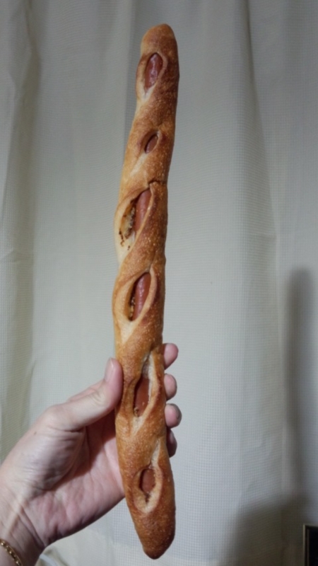 昨日、パン屋でレジに向かってたら「ただいま焼き上がりました~!」って声と共にやってきた、ロングソーセージ。