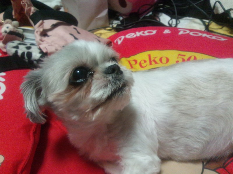 昨日、サッカー観に行って帰ってきたらわんこがいました。(笑)