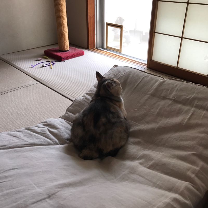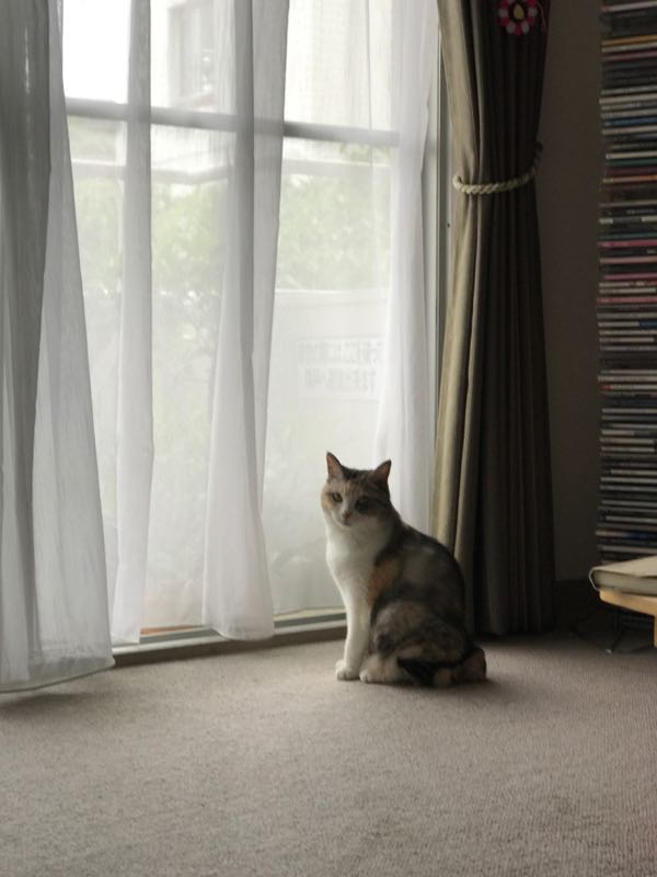 「さわやか自然百景」の鳥の小鳥と映像にスクランブル発進、テレビ前まで到達した一瞬後にカモシカのシーンに変わってしまい落胆の表情。マンション猫だって鳥を追っかけたいよね。閉じ込めてすまんなぁ...。