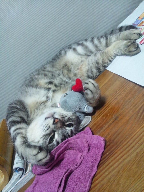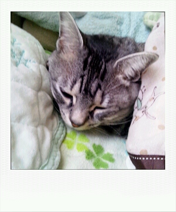 愛護センターから引き出してくるときに、いちばんぶちゃいくで貰い手がつかなそうな子を優先して選ぶので、髭みたいな模様の子に目をつけていたときのお名前候補は「ヒゲ子」とか「ヒゲ美」だったりしました。。