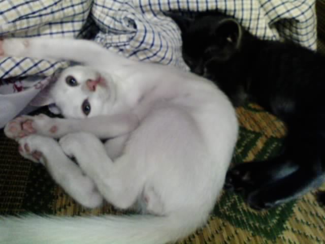 毎日、ネコ缶&牛乳(お高い低脂肪乳)を飲んで、すくすくと育っております。
