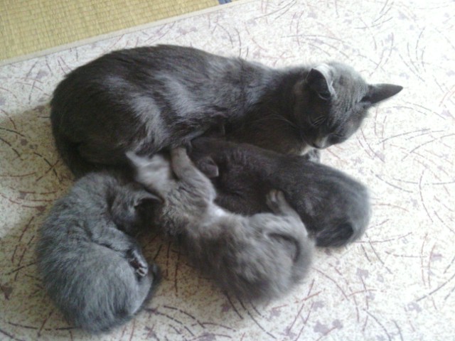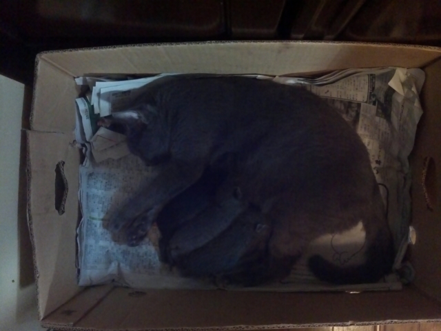 本日、3匹の子猫(オス1、メス2匹)が新しい家族に貰われていきました。