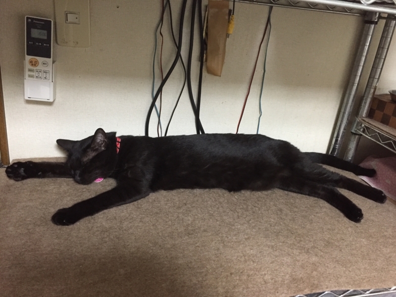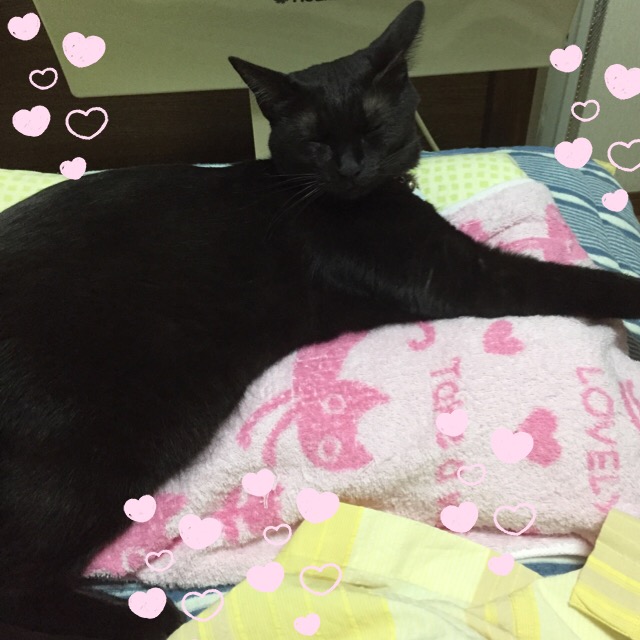 「にゃあん♡」 って超可愛い声で鳴いて、そのあと、おもむろにわたしの枕の上に寝転がって、一緒に寝る?って感じでゴロゴロいってはりました。