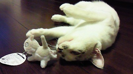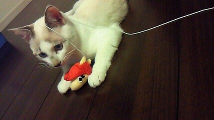 なかなか取れなくて必死に遊んでる。シメシメ…^^