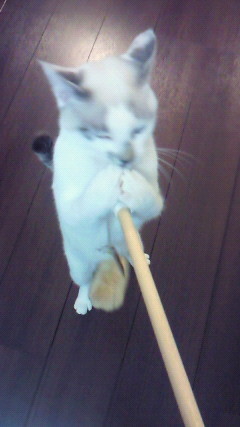 イラっとするのか 棒や持ってる私の手の方にアタックしてくる。