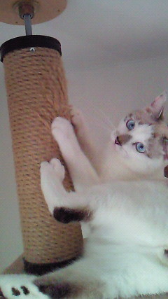 バリバリバリバリ!「ちらっ」バリバリ!何故か爪とぎの合間に私を見る。