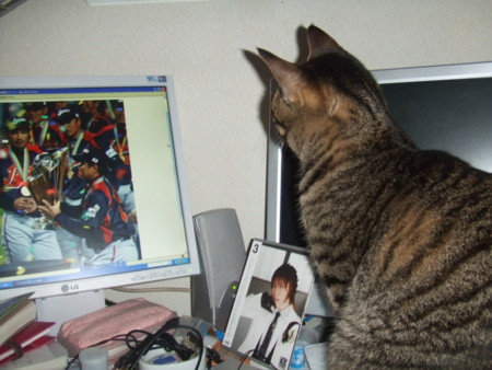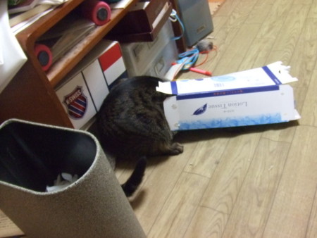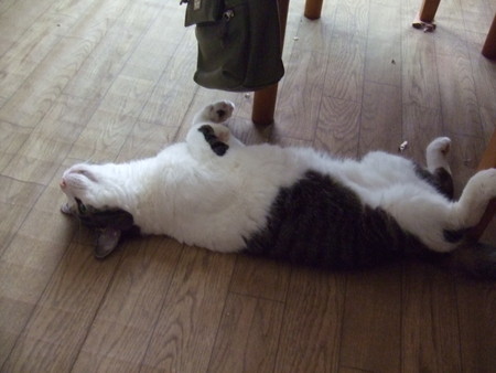 うちの猫(次女)は、お尻をなめる際に何故か、いわゆる「オヤジ座り」の状態で頭を屈め両足を上げるという体勢で実施していた。あまりにマヌケな姿なので、カメラに収めるチャンスを狙っていたのだが、最近になって片足だけを上げるスタンダードな体勢を身につけてしまった・・・。無念。