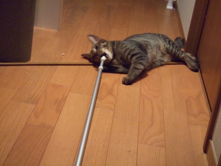 「これがラス1だからね」と新品を手渡すと、こわしたねこじゃらしの事などすっかり忘れて口にくわえて得意げに歩いていた。