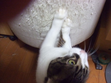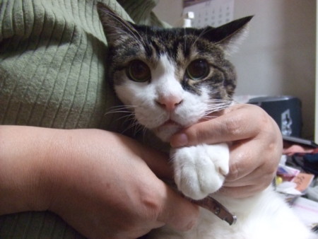 「んにゃっ、ふにゃっ、にゃー!」と前足をばたつかせて抗議。