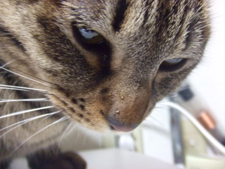 人間がクシャミをすると、必ず「にぁぁあ~~にっ、にっ」と文句を言う(次女)。