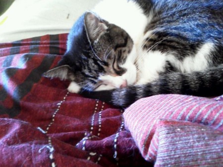 喘息がまだ治りきっていないというのに、ついつい寝ている猫(長女)のとぐろの中心部に顔をうずめて咳き込んだ。